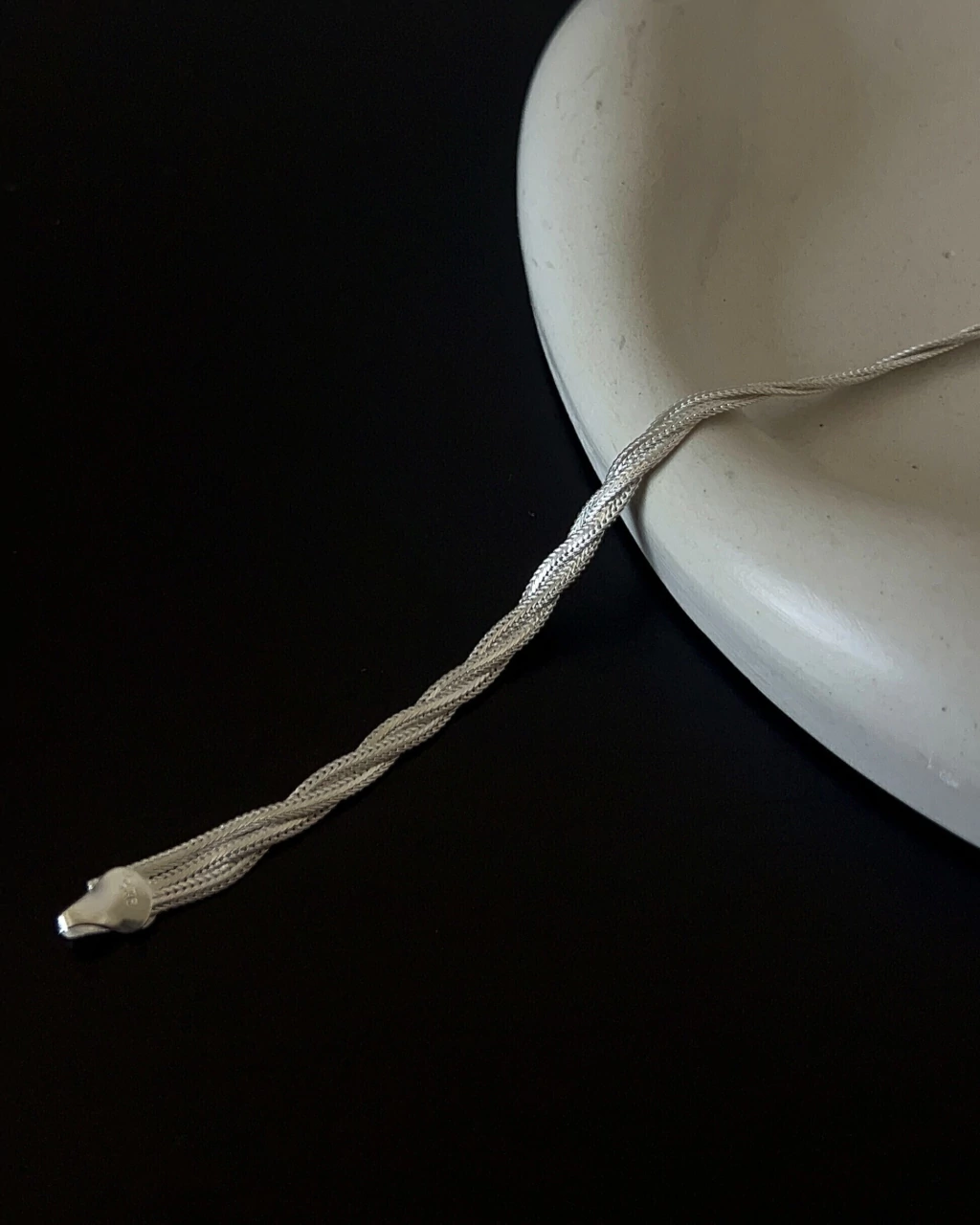 Moderna e sofisticada, esta pulseira apresenta três fios entrelaçados em um design rígido que combina estilo e elegância. Com 18 cm de comprimento, ajusta-se confortavelmente ao pulso, destacando-se sozinha ou compondo mix de pulseiras.